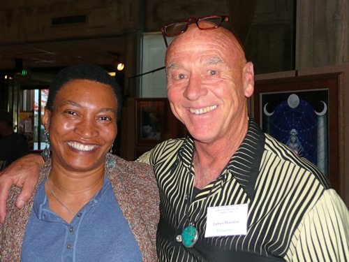 Here is a look at BATS (San Francisco Bay Area Tarot Symposium) in pictures. I understand this was the biggest one yet with over a hundred people at the one-day Saturday event and around fifty at the Sunday Salon. A big thank you to Thalassa and the Daughters of Divination for another wonderful symposium. Here’s the newlyweds: Thalassa & Rydell (courtesy of Arnell Ando).