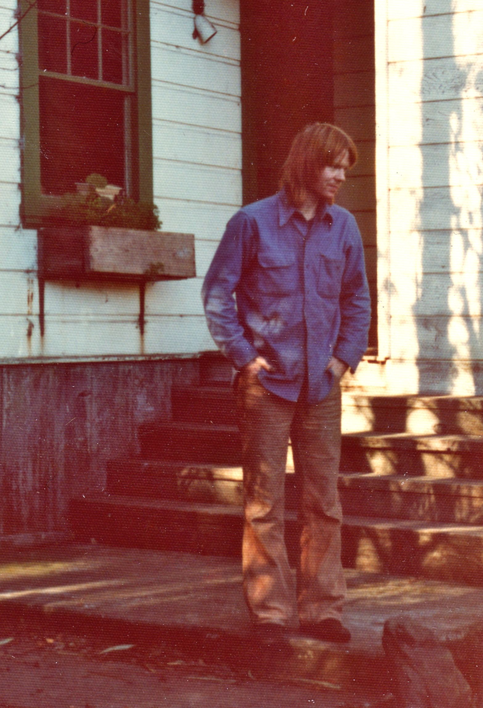 I first met Jim, briefly, at a garden party in Bolinas in the Spring of 1976 (I was newly arrived in San Francisco from Florida), and then I met him again at a smaller gathering in August or September of that year. There was a sense of fate about our two meetings (photo above of me taken by Jim in ’76). My impression of him was that he was sweet and shyly innocent. We went to the Marin Renaissance Fair a few days later. He was in the process of moving from his rooming house in Bolinas into the small farmhouse at the bottom of Mesa Road, and I was having to leave my flat in San Francisco, so he invited me to move in with him. But first he had to explain to me about his being on methadone, which surprised me (I think he was aware of how deceptively innocent he appeared). As I got to know him, I became convinced he was determined to get through his addiction, albeit slowly, since he had quit heroin cold turkey before (in New York) and then gone right back on it. He didn’t want to fall into that trap again, but he believed the only way to get clean was to remove himself from everything he had known.