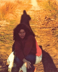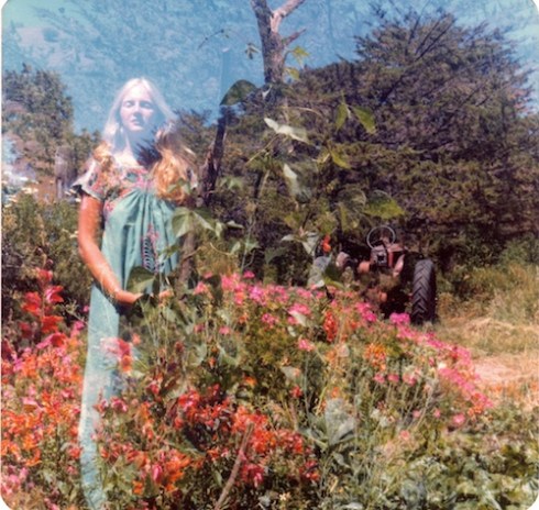 One leg was a couple of inches shorter than the other as the result of a life-saving surgery and she limped noticeably—which contrasted with her otherwise ethereal beauty. She said she moved to the Bay Area to do private bodywork sessions with Moshe Feldenkrais who came to California a couple of times a year, and within two years she walked without a limp. She also had to wait for money from the lawsuit over the accident in order to go to law school. They didn’t have a bath or shower in their cabin and had to use ours, so Jim and I got to know Rosemary pretty well. She was really into music and Patti Smith was her idol, which was a link between her and Jim right from the beginning. (This photo of Rosemary was an accidental double exposure taken in the community garden.)