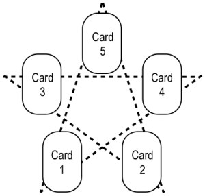 As an example, I’m going to present a partial reading of Jeanne’s 5-card Goal-Setting Star Spread. I’ve used Tarot of the Sidhe by Emily Carding. My intention is: What do I need to know to help me publish a print-on-demand plus e-book?