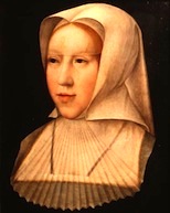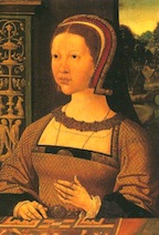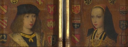 At three years of age Margarethe was betrothed to the Dauphin of France (later, Charles VIII), but at ten was returned to her family when he married someone else. In 1497, at seventeen, she and her brother, Philip ‘the Handsome’ (Archduke of Austria, ruler of Burgundy and the Netherlands, and in line to become Holy Roman Emperor), were married off in a double alliance to the Infante Juan and Infanta Juana, children of Ferdinand of Aragon and Isabella of Castile (who sent Columbus to America). (Pictures below are of Philip and Margarethe.)