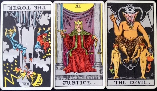 I want to note that I was very aware of projecting my own feelings onto the cards as I read them, so the above interpretation in no way represents an objective analysis of Trump, but rather my own perception of him. It was startlingly clear to see my opinions take precedence over any other interpretation of the cards. When reading for myself, I find it is an opportunity to become conscious of my own semi- and un-conscious perceptions of a matter. It is through the Tarot that I’ve learned to see through to many of my own biases and assumptions. But, that’s another discussion.