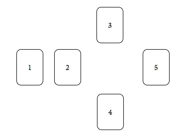 Briefly shuffle all cards except that in Position 1. Spread them face down in a fan on the table. Use your intuition to select cards for the remaining positions from anywhere in the fan.