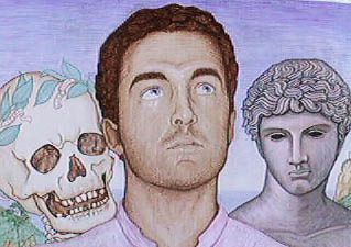 Afterwards, over pizza and wine, about a dozen of us taroteers inaugurated our first Patron Saint of Tarot – Santo Briano (there is no such name as Brian in Italian – so that’s the name they made up for him in Italy). We also came up with the following prayer that contains many oblique references to his holy symbols and sacred acts. Eros and Thanatos (see below, also known as “the cabana boys”) were his imaginary sidekicks who kept him in as much trouble as possible.