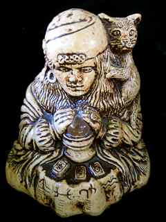 Do a Google search on the words ‘psychic + tarot’ and you’ll come up with 370,000 entries, the majority of which are professional readers advertising their skills. One person offers an “intuitive, psychic tarot reading.” Others list themselves as an “empathic, intuitive, psychic tarot reader,” a “gifted psychic reader,” and a “psychic medium who uses the tarot”. The claims are sometimes outrageous—“99% accurate psychic predictions,” “only the truth,” “world renown,” “specializing in reuniting loved ones,” and “love and money spells” to remove curses—all indicators that you should beware of what you’re getting into. One characteristic of a psychic tarot reading, it seems, is that you won’t find interpretations that come out of a book; instead these are “cosmic insights,” “channeled wisdom,” or clairvoyance. (I bought this statue when Tarot for Your Self first came out—to celebrate the day.)